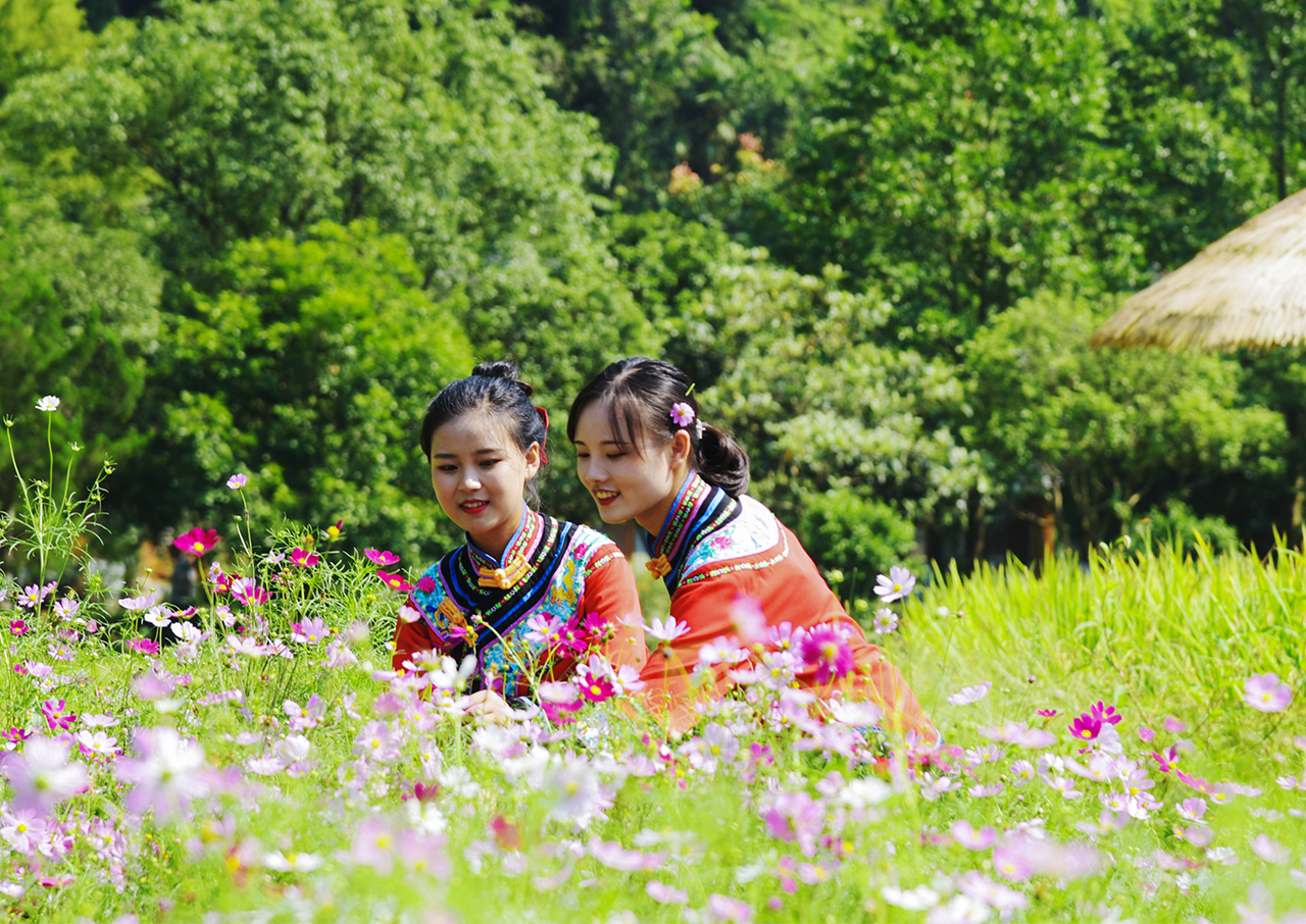 9月7日,白露節(jié)氣,張家界市武陵源區(qū)黃龍洞景區(qū)生態(tài)廣場,百日菊、格?;幭嗑`放