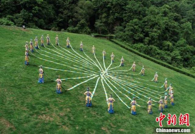 5月3日,湖南張家界武陵源黃龍洞風(fēng)景區(qū)的青年員工身著盛裝,上演了一場(chǎng)精彩的苗族頭帕秀,喜慶五四青年節(jié)的到來(lái)。